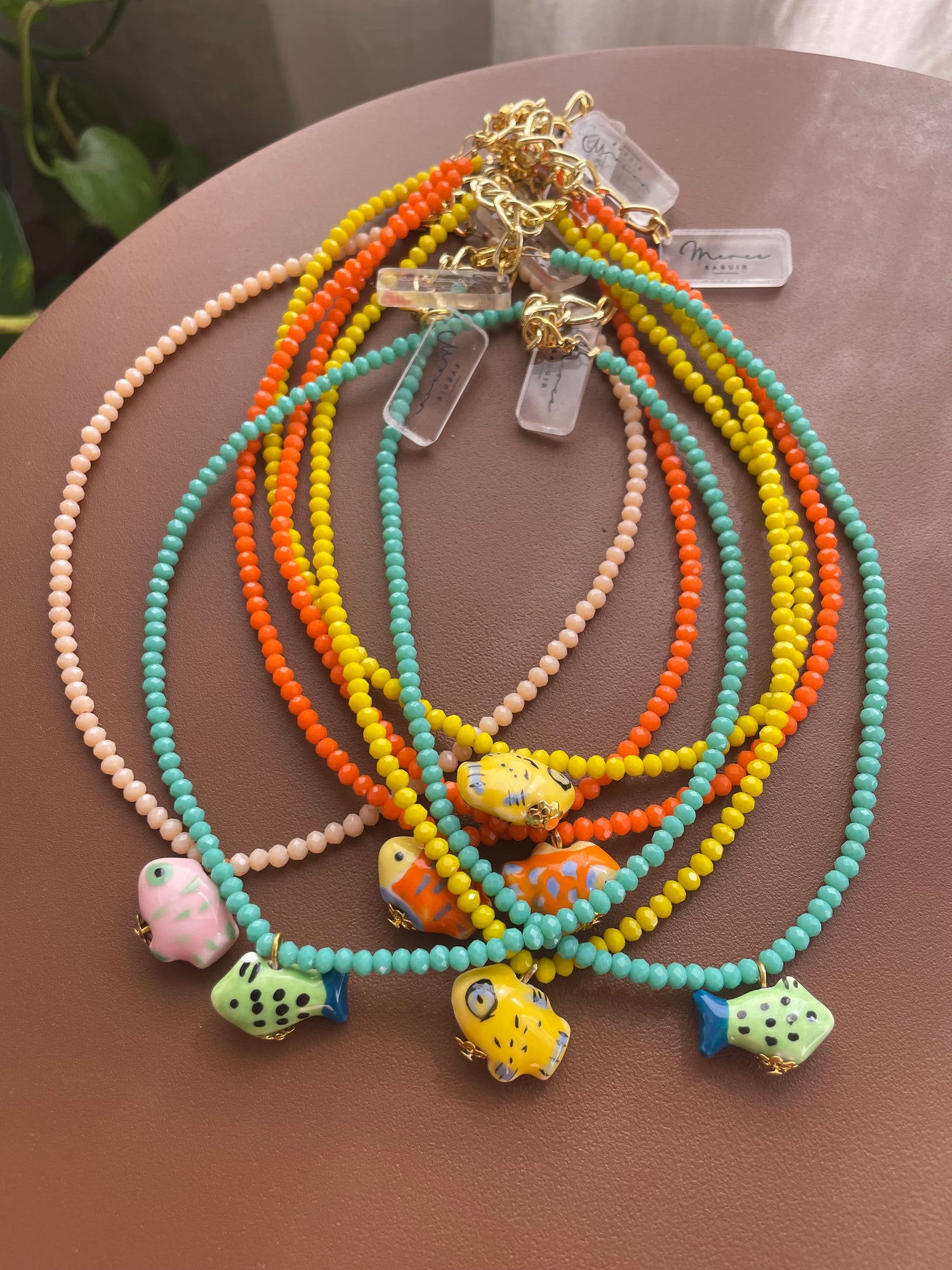 armaos en pequeños cristalinos de colores y pececillo en porcelana.
