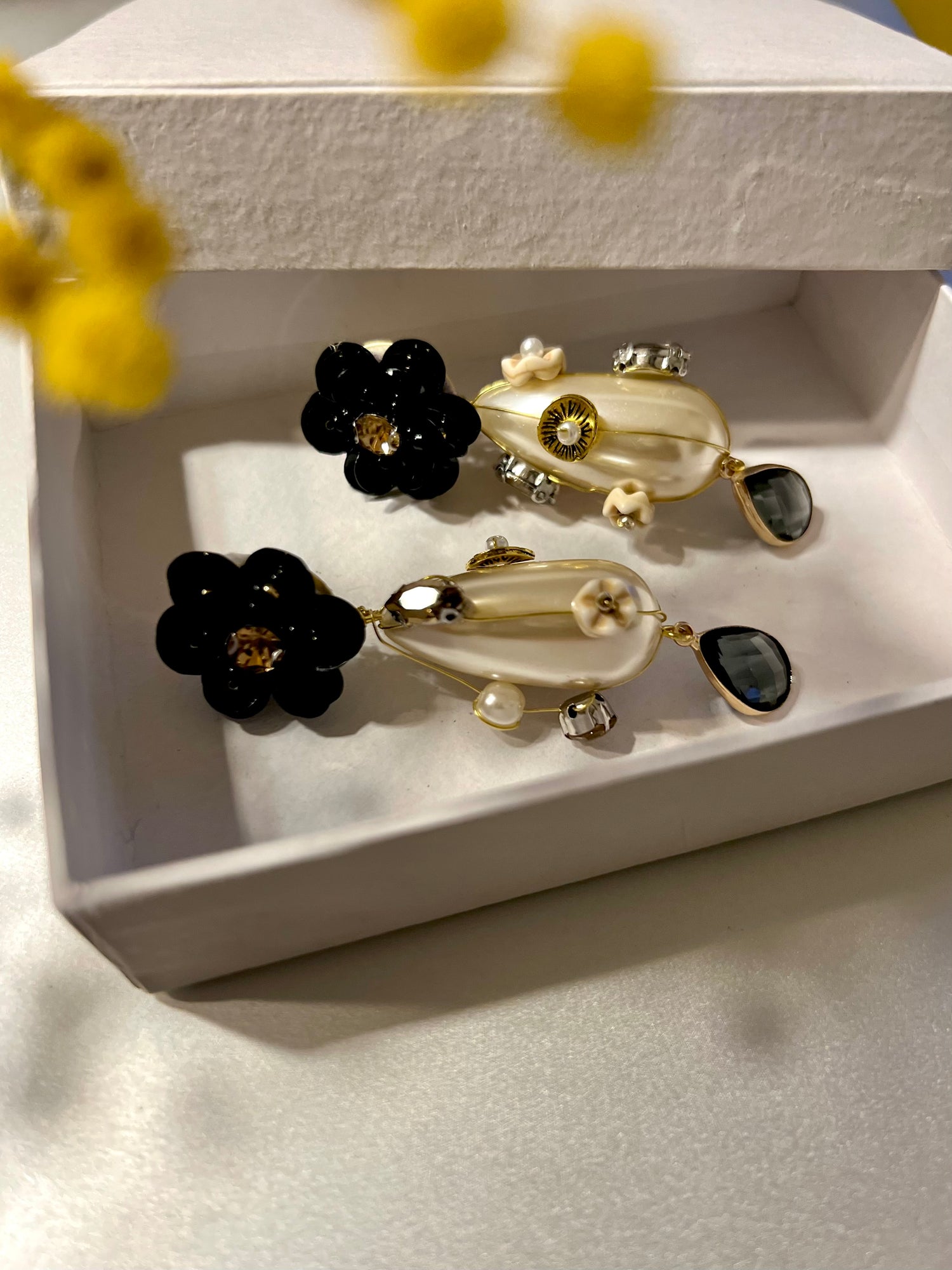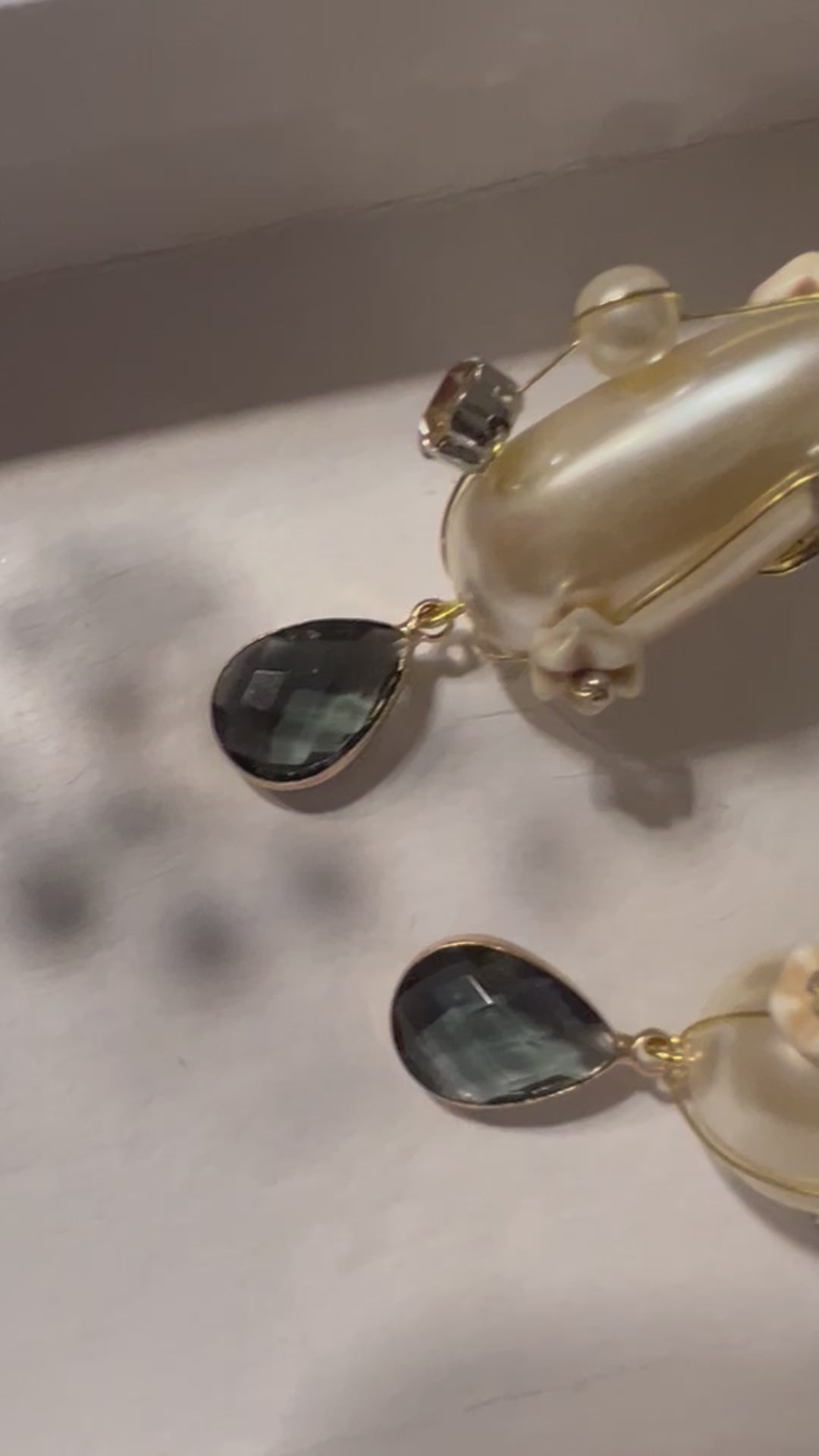 - Pieza principal, una gota de perla, cubierta con alambre, cristales, perlas y piedras.