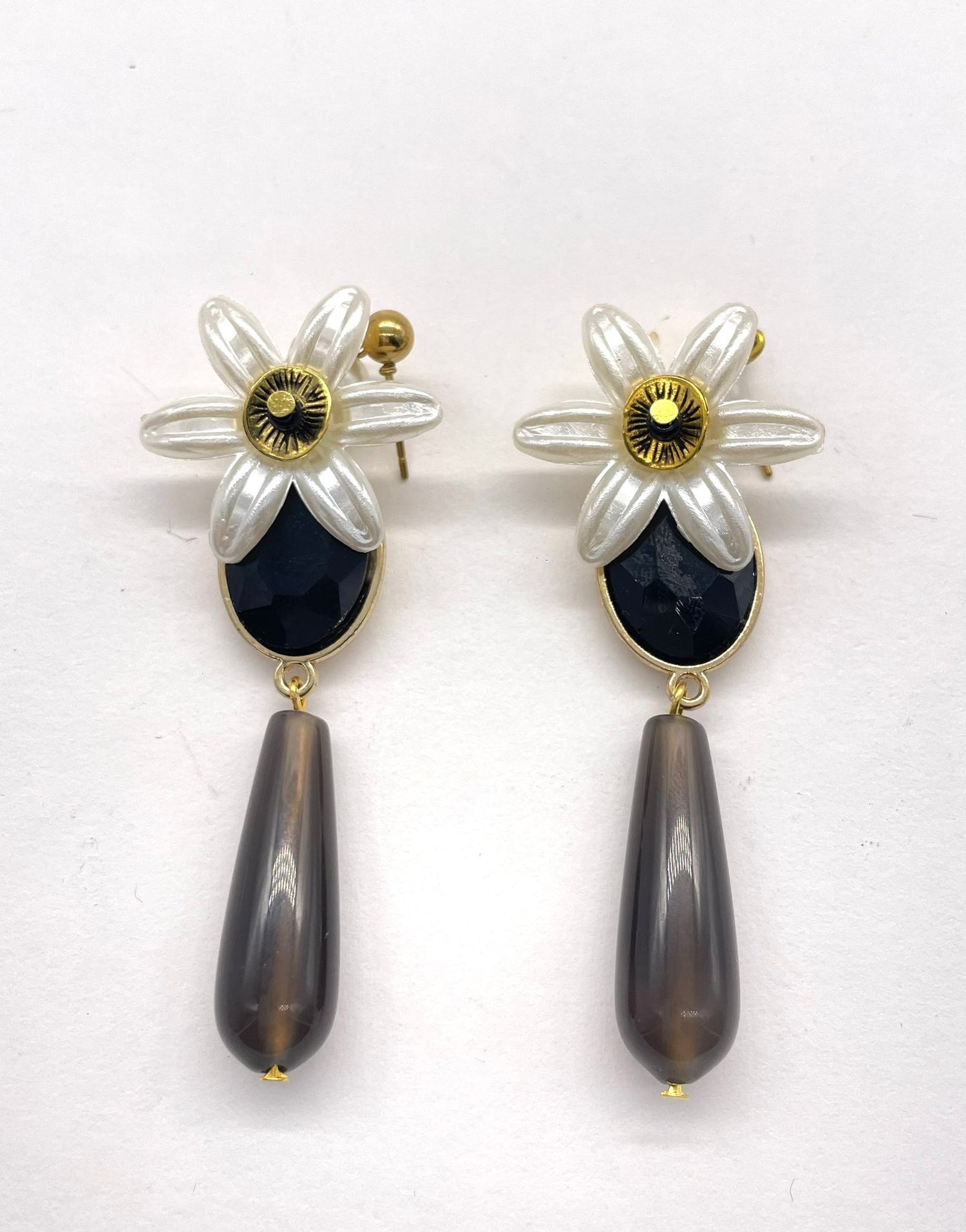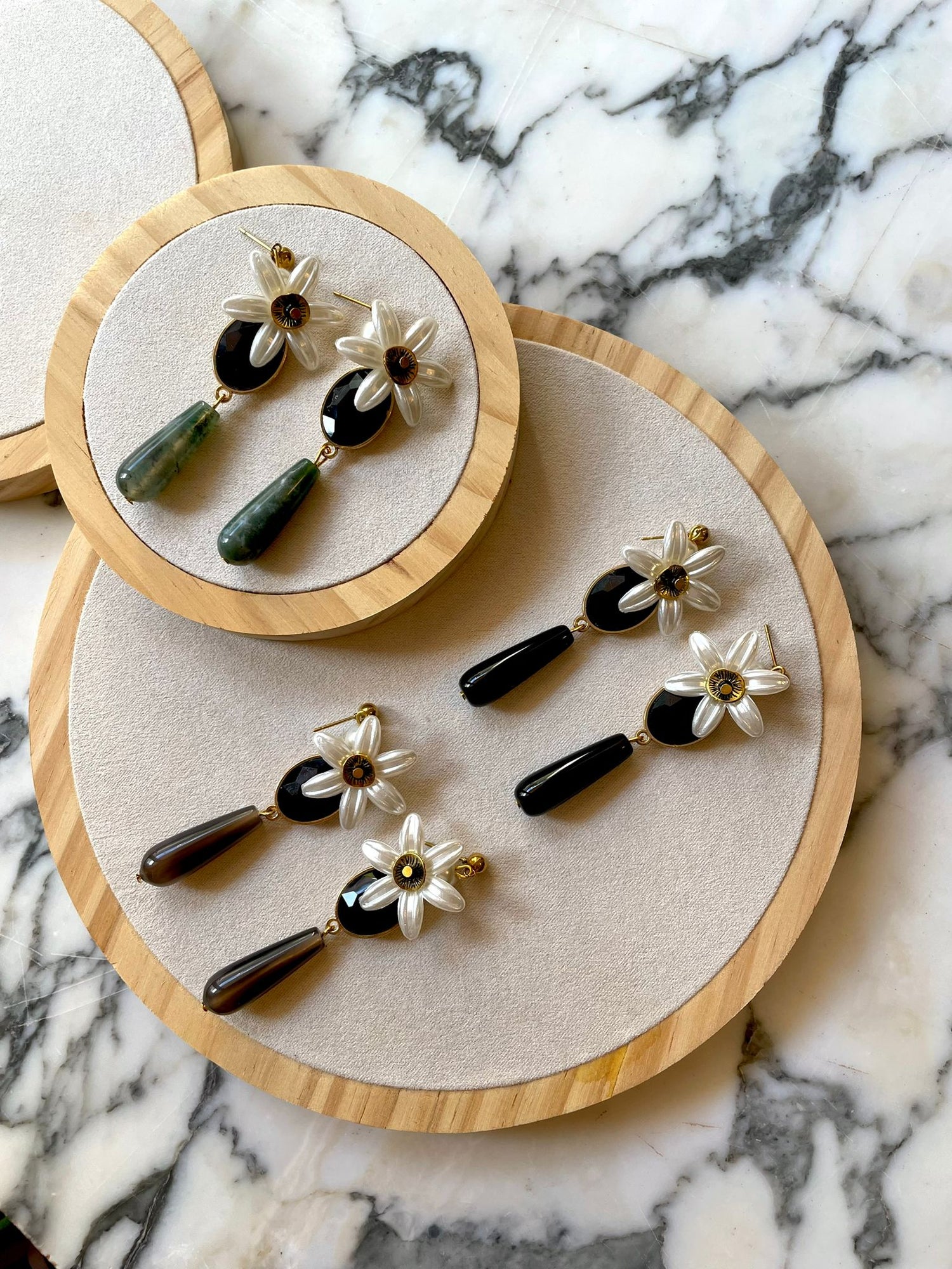- Piedra negra con engarce dorado y piedra colgante en forma de gota