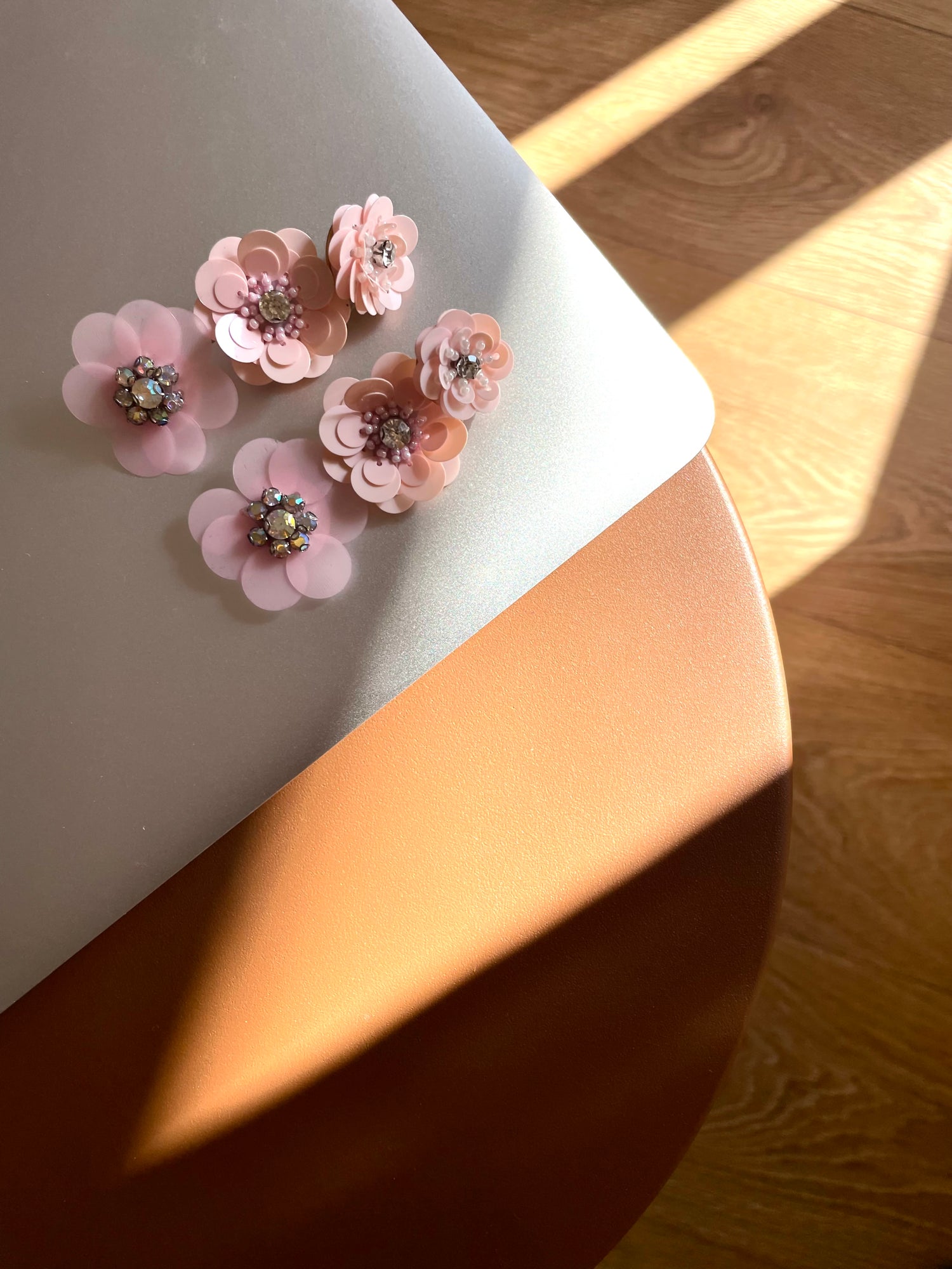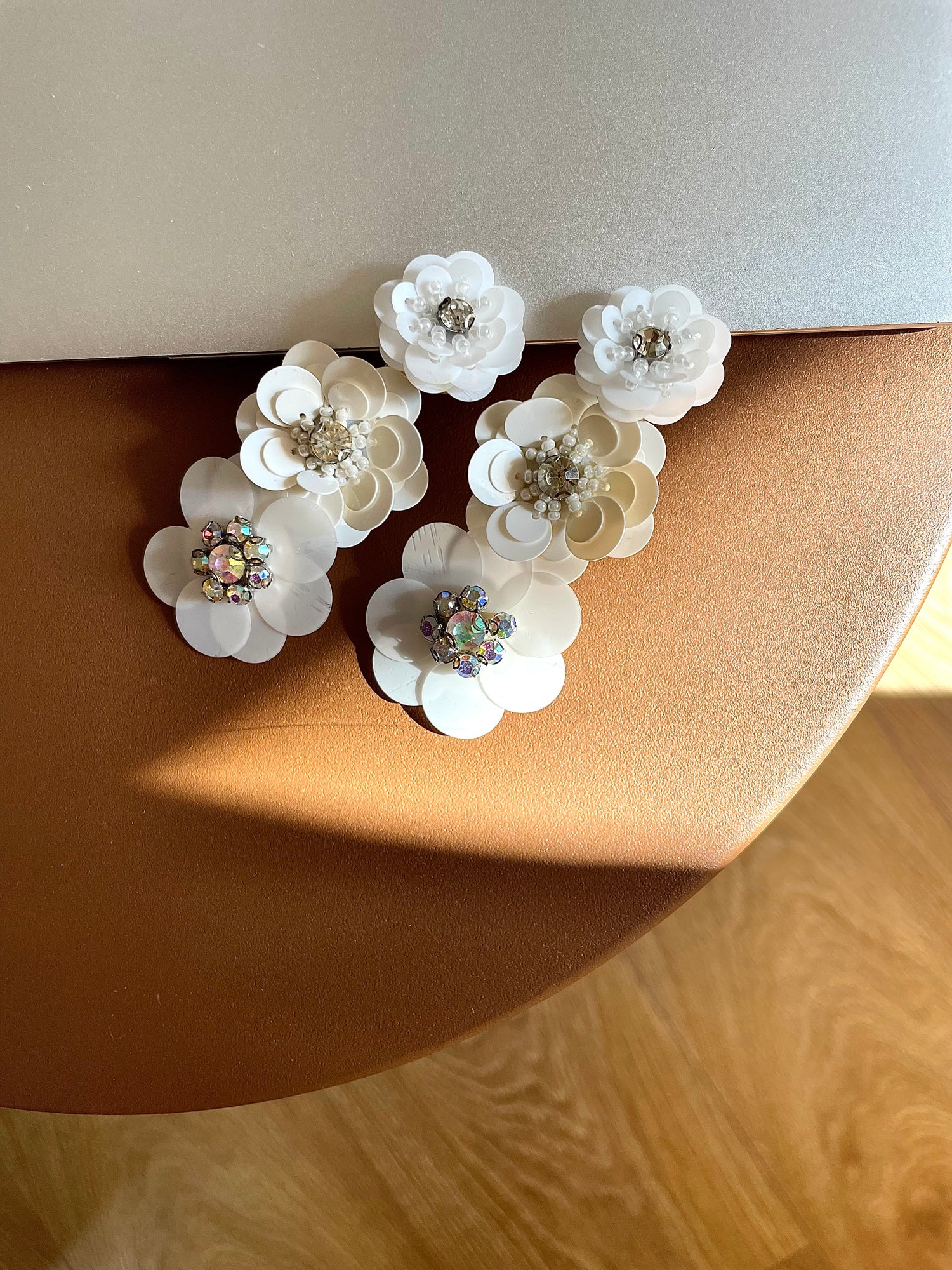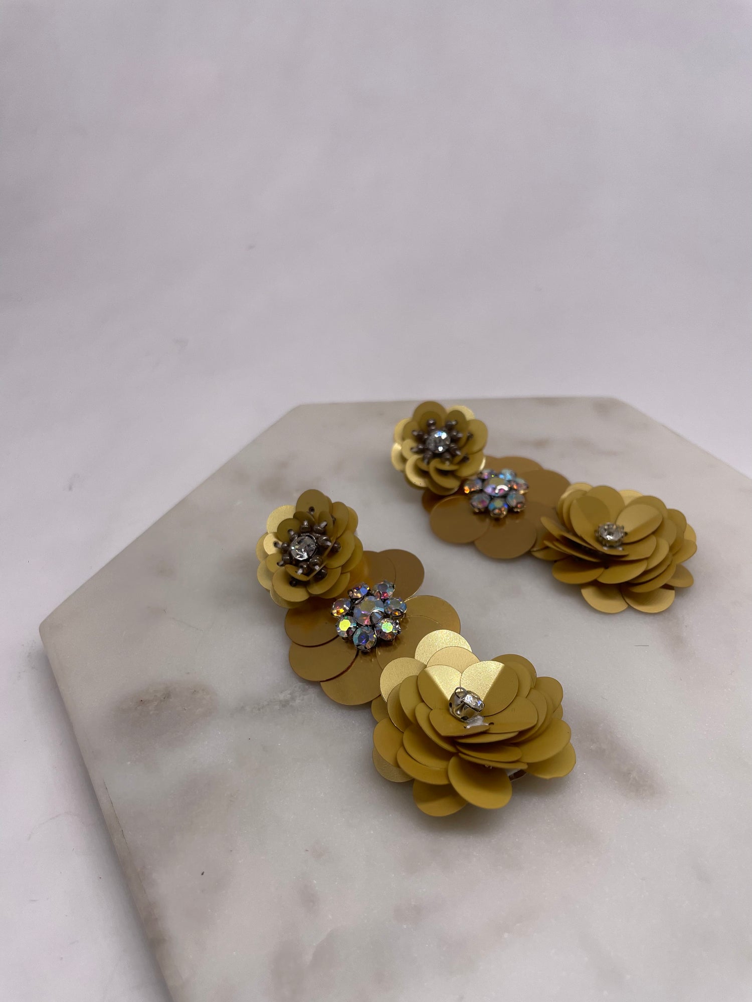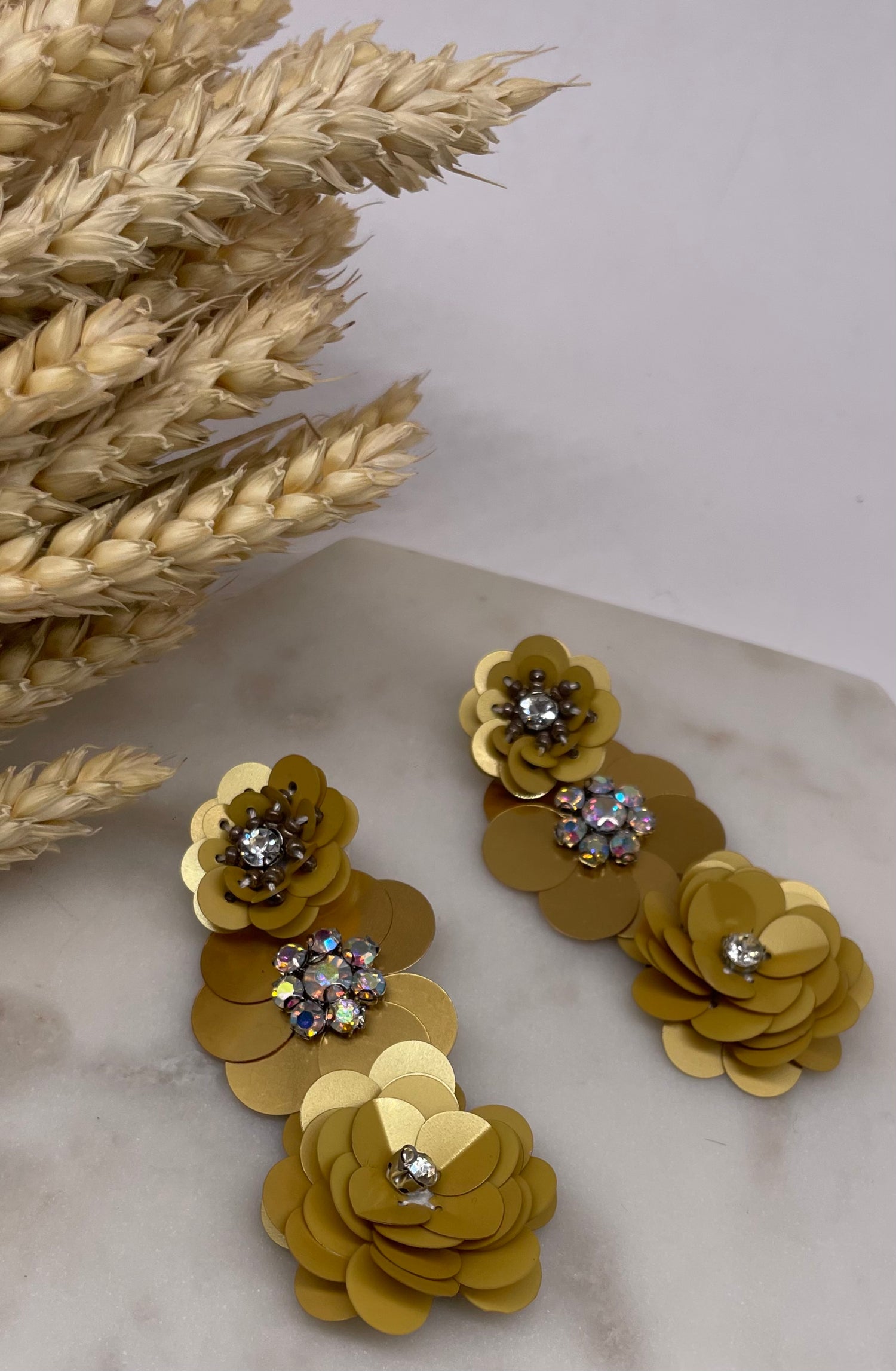 Pendientes con 3 flores de lentejuelas en distintos tamaños….
