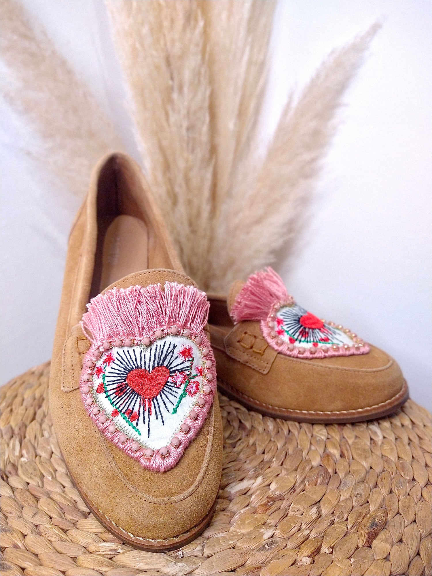 Dentro de nuestra línea de piezas únicas, diseñamos una Colección Cápsula de mocasines de piel, fabricados en Brazil, los utilizamos como modelo base y arriba trabajamos nuestros diseños. No hay dos iguales! todos cocidos a mano on costura reforzada!